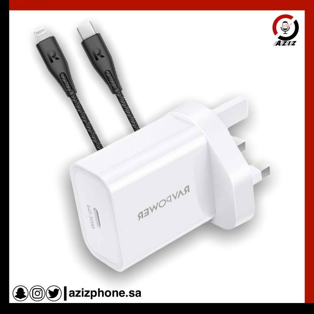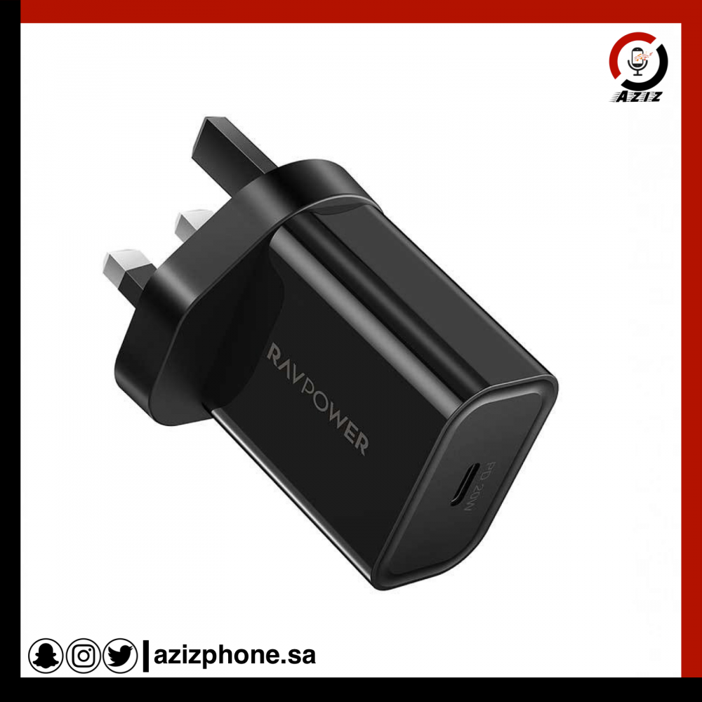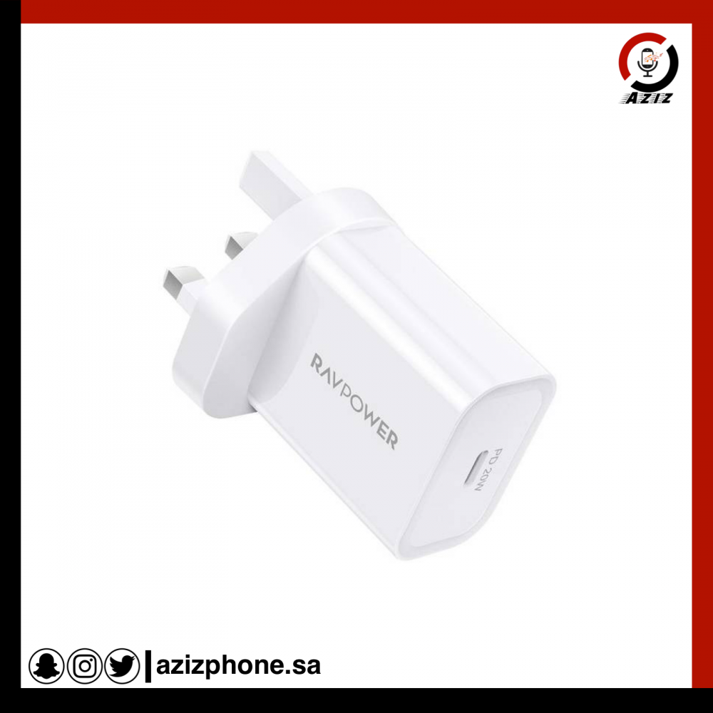 - شاحن جداري من شركة راف باور بقوة 20 واط بمخرج PD لشحن أسرع